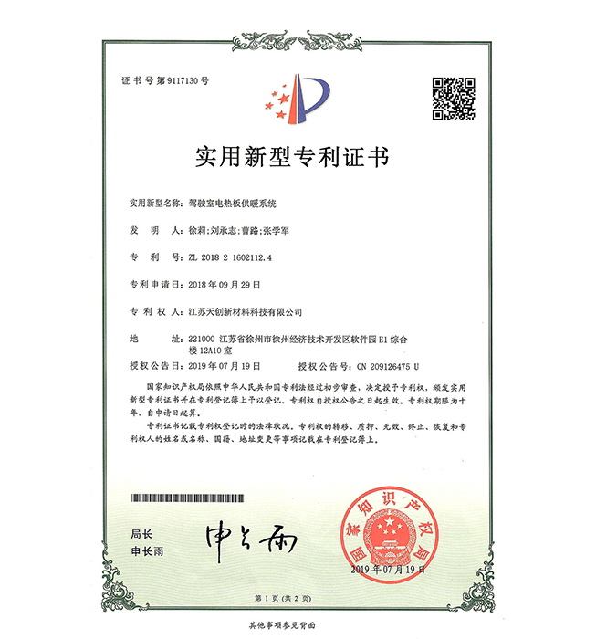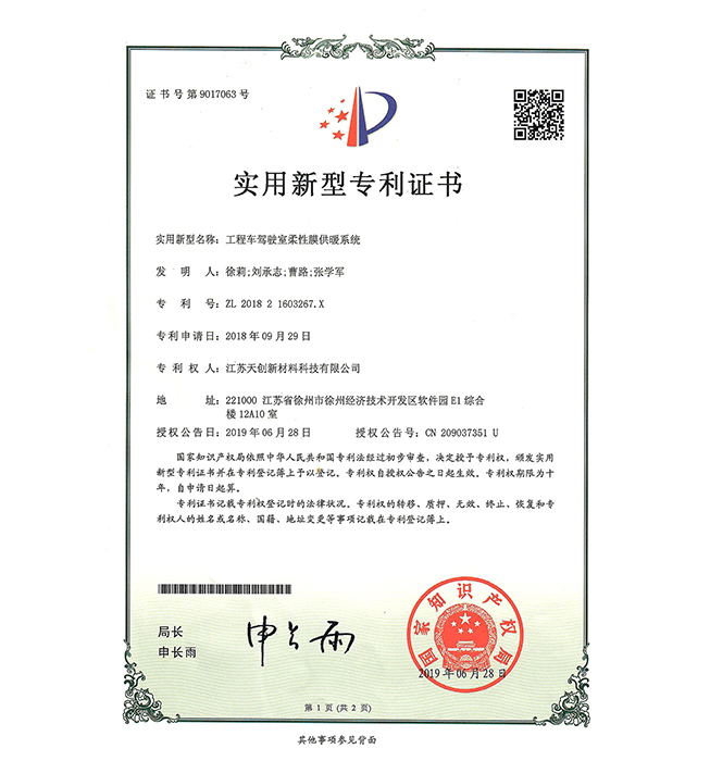 工程車駕駛室柔性膜供暖系統
